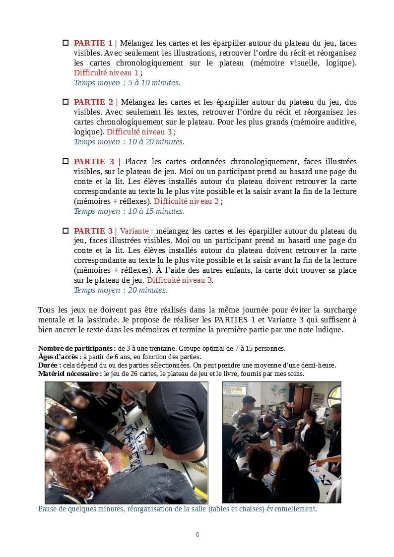 Toutes les activités présentées dans cette fiche n'ont pas été réalisées. Tous les jeux de plateau n'ont pas été fait et l'atelier d'écriture a été constitué de la première des trois activités.